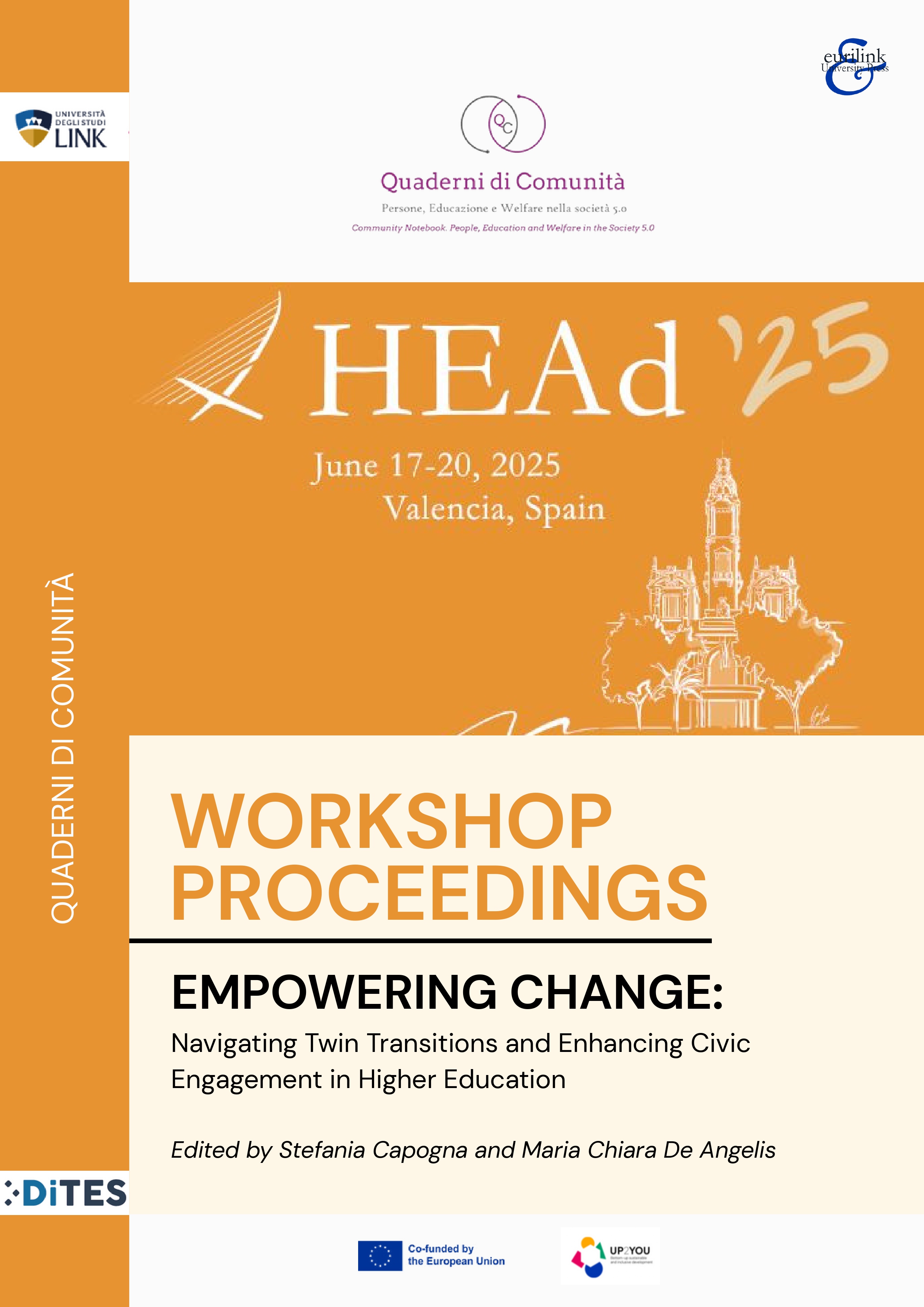 It features the proceedings from the UP2YOU Workshop, "Navigating Twin Transitions and Enhancing Civic Engagement in Higher Education," held in conjunction with the 11th International Conference on Higher Education Advances (HEAd’25) in Valencia from June 17 to 20, 2025.